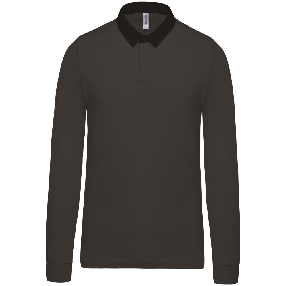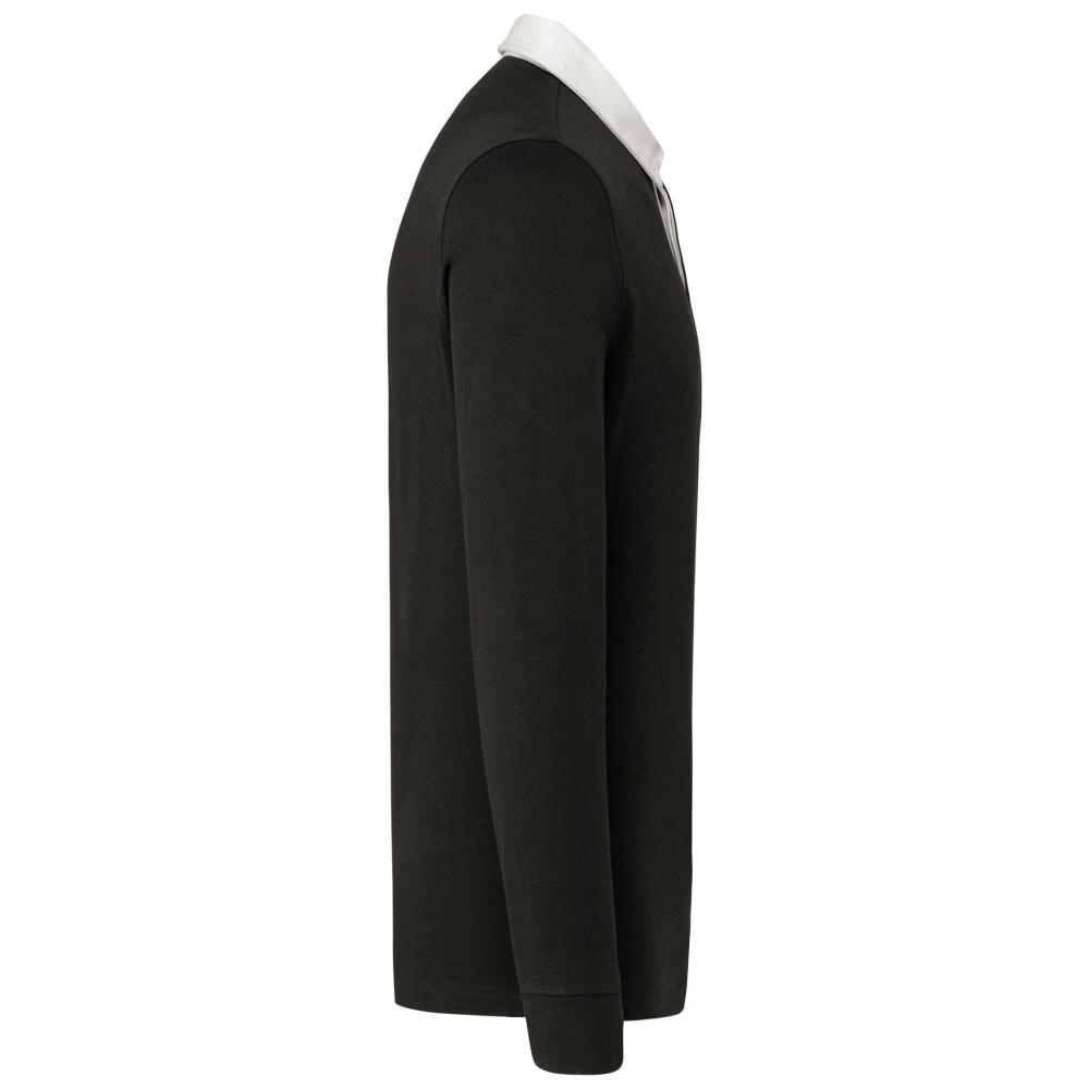 100% voorgekrompen gekamd jerseykatoen. Kraag in contrasterend wit twillkatoen (behalve de kleuren Red en Dark Grey, die een zwarte kraag hebben). Lijst met 3 knopen. Mouwuiteinden in 1x1 ribboord. Afwerking met visgraatmotief op de binnenzijde van de kraag en aan de zijsplitten. Gecertificeerd STANDARD 100 by OEKO-TEX®N° CQ1007/7, IFTH.